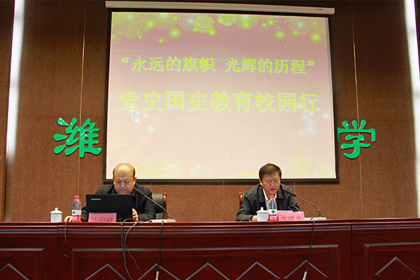 值中国共产党建党94周年和中国人民抗日战争暨世界反法西斯战争胜利70周年之际,10月21日,由峡山区政治工作部组织的“永远的旗帜,光辉的历史”党史、国史教育校园行活动在我校唯真楼报告厅隆重举行 ...